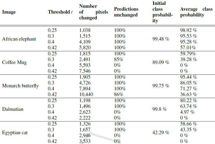 - In (b), 1.8% of total pixels had noise added, with a prediction agreement rate of 89.5% compared to the original model.