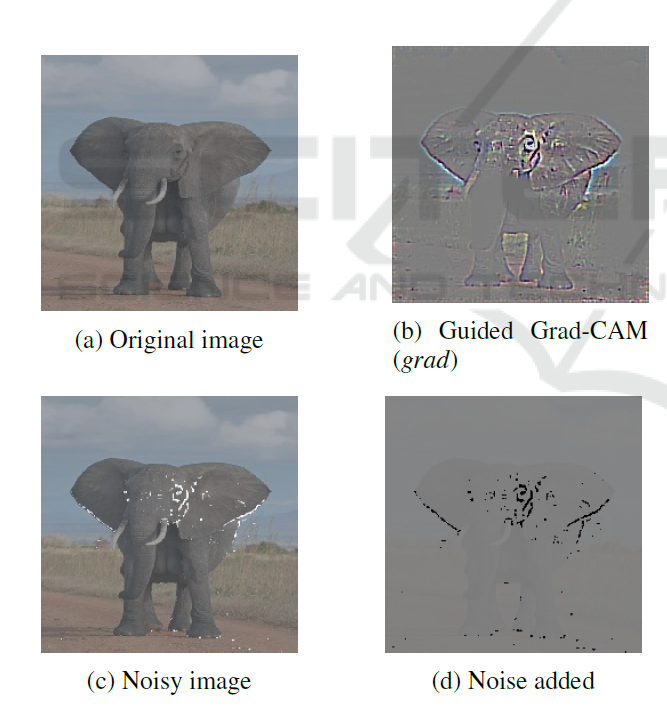 Noise is added to specific pixel values of the image using a visualization technique called Guided Grad-CAM.