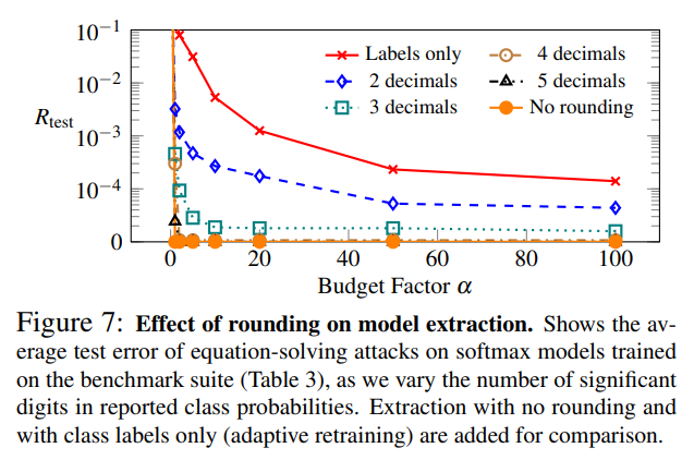 In the attack results on softmax models, it was confirmed that rounding the output values to 2-3 decimal places weakened the attack efficiency.