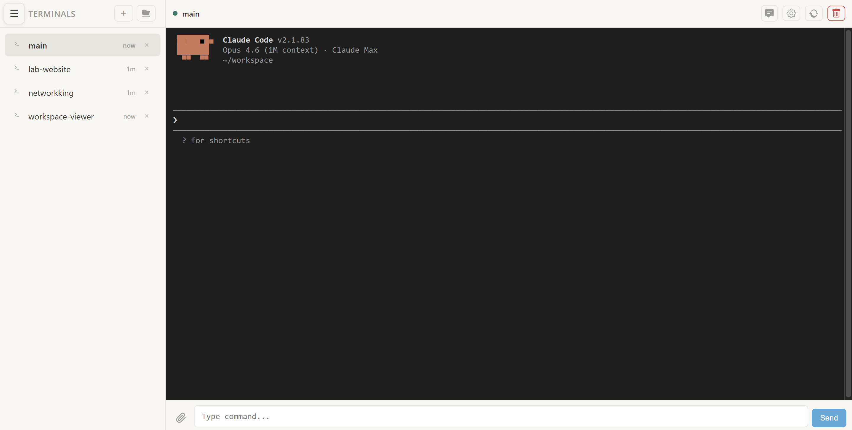 +button — set a name, startup command, and chat mode - Switch between multiple active terminals