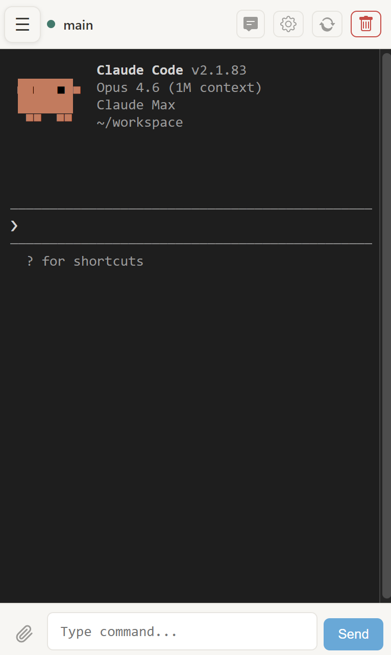 Claude Code starts in interactive mode, with full access to your workspace. You can now use Claude Code just as you would locally — reading files, writing code, running commands — all through your browser.